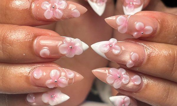 Gel extensions are soft gel tips that are applied over your natural nails to extend your nail length. They are durable and can last up to 4-6 weeks, with the right care!