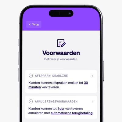 Ga naar Planning en Voorwaarden om in te stellen hoe flexibel klanten kunnen boeken, tot wanneer ze een afspraak mogen maken en annuleren.